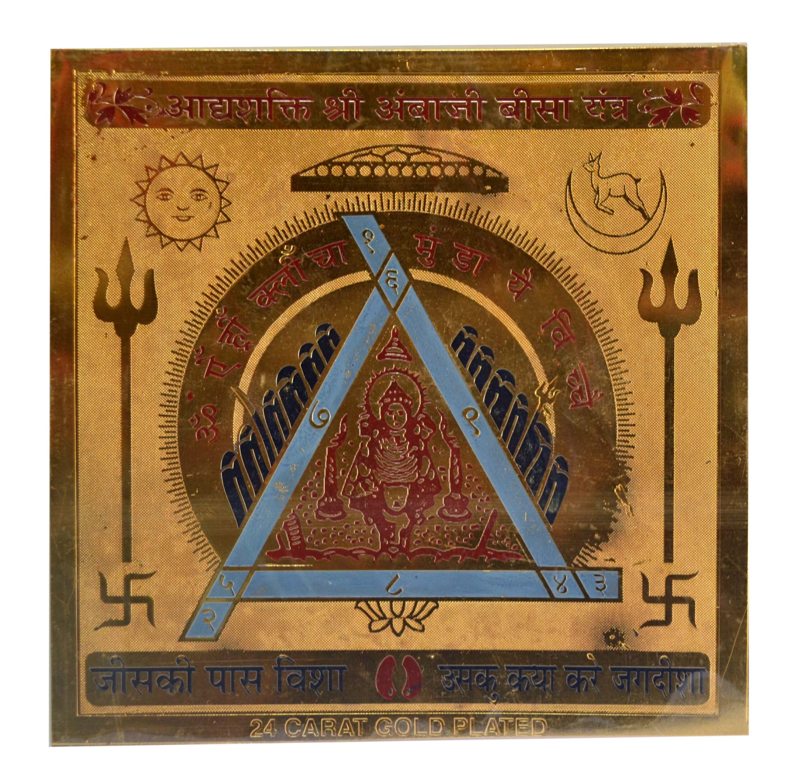 Aadhshakti Ambaji Bisa Yantra In Copper Gold Plated- 6 Inches
