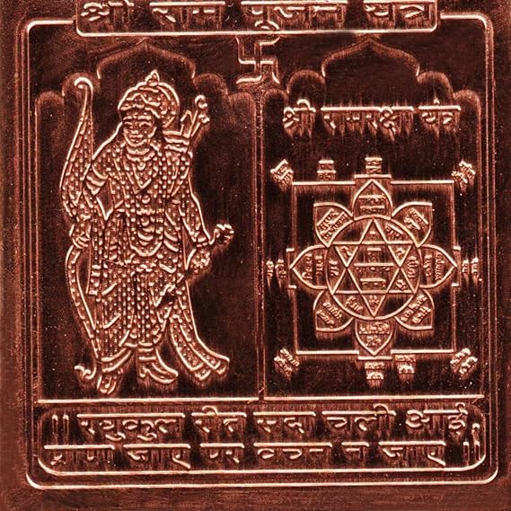 Ram Pujan yantra symbolizes Lord Ram who is an avatar of Lord Vishnu. Lord Ram embodies everything that is good and right in a human being.This powerful yantra helps the person to escape the troubles and establish peace and harmony at home and work. Ram Pujan yantra eliminates all the troubles and obstacles from the follower’s way and bless him with happiness and prosperity. A person who places the Ram Pujan yantra in his home or workplace will notice that all his difficulties and failures are being replaced by success and affluence. Lord Ram bestows his blessings in the form of comfort and all round prosperity to the people who religiously worship the Ram Pujan yantra..