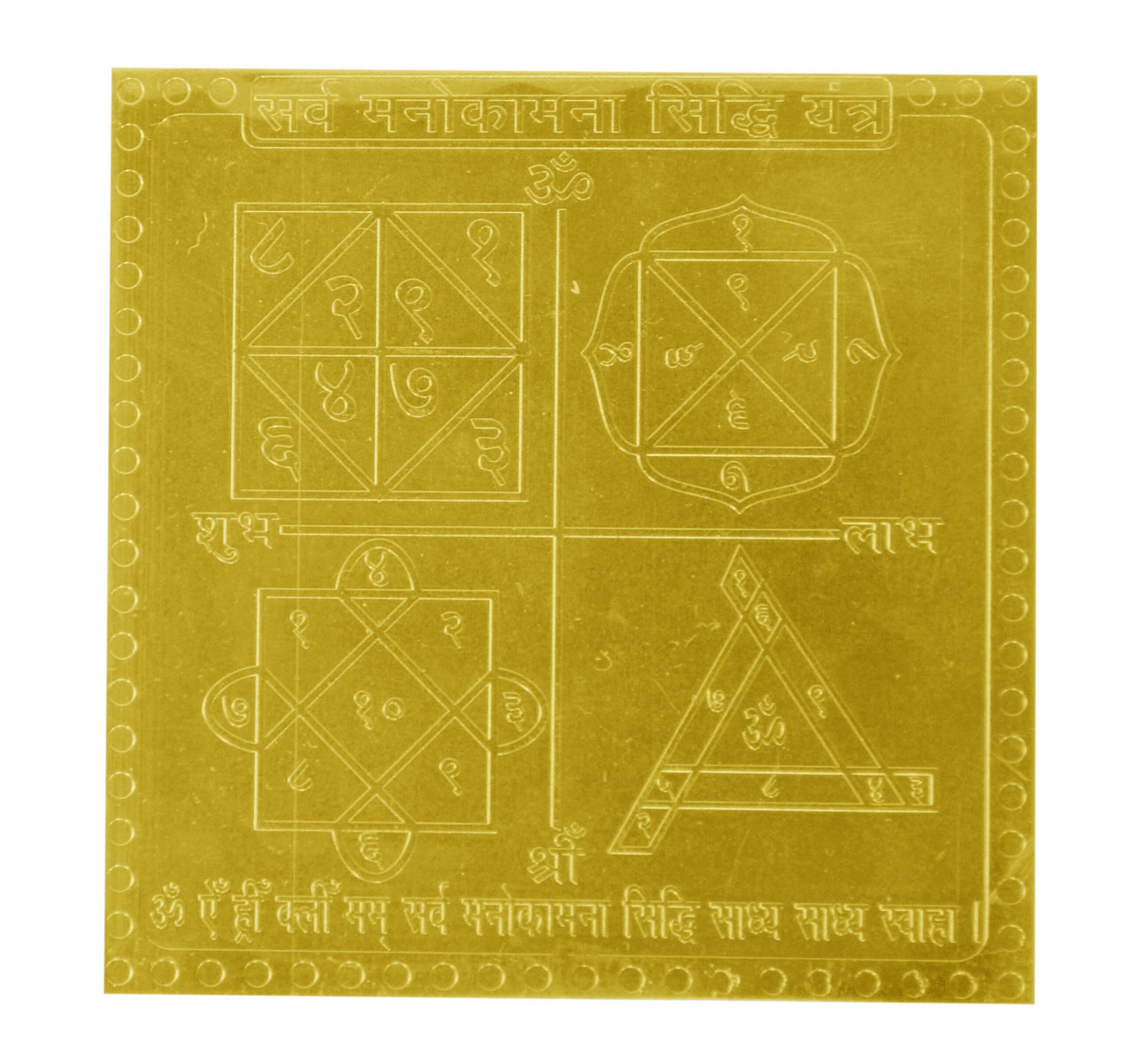 The word ‘Manokamna” means desire. As the name suggests, this yantra ensures that a person’s desires are fulfilled. This numerical yantra, which is also infused with the positive energy of the Beej mantra, makes for an ideal gift for someone whom you wish to see blessed with good fortune and prosperity. Around the outer squares of the grid, there are lotus petals with ‘’Hrim’’ inscribed in it, the powerful and extremely potent Beej mantra . It is considered an auspicious and lucky talisman to possess as it not only fulfills desires but also increases inflow of money. It is suggested that the yantra be installed on a Thursday facing the North East. Keywords: potent, powerful, prosperity, fortune, luck, talisman, fulfillment of desires.